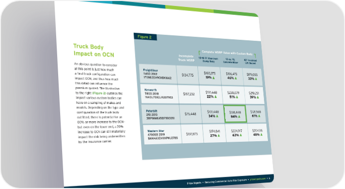 Figure 2 Žruc€ Body Complete ˆ‘… ’ lue „it‚ Cutom Body ncomplete 3 mp ct on “C” 15-16 ft Aluminum 13 cu. Yd. 2’ nul ted Žruc€ ˆ‘… Dump Body Concrete ier ift Buc€et An obvious question to consider at this point is just how much Freig‚tliner €‚,ƒ„… €†‚,‡„… €„†,…… a final truck configuration can 114SD 212 €ƒ‡,„„… 1‰Š 6Š 33Š 1D C€1662 impact OCN, and thus how much this detail can influence the premium quoted. The illustration ƒen„ort‚ €†€,‡‡ ƒ,„† €, …€ to the right (Figure 2) outlines the ‚ƒ 21ƒ €…„, ƒ 22Š 51Š 3‰Š impact various custom bodies can 1„€D…†‡2ˆR2† ‰ have on a sampling of makes and models. epending on the tpe and configuration of the truck bod …eter†ilt €€,‡‡ €ƒ,‡‡ € €,…‚ 21 21 „…,‡‡ 3Š 61Š outfitted, there is potential for an P1Š6‡‰D‰ ‰1 ŒŠ or more increase to the OCN but even on the lower end, a increase to OCN can still materiall ‡etern ˆt r €„‡,‡€ ‡,†€„ ‡,€€‚ impact the risk being underwritten 4†S 21 €ƒ„,„… 2‹Š 63Š ŒŠ b the insurance carrier. ‰€€A‡D‡€P€‹2†ƒ‰ Price Digests • Reducing Commercial Auto Risk Exposure • pricedigests.com • 6
