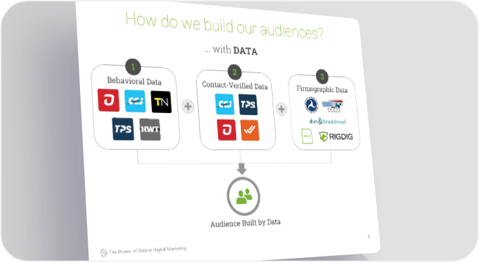 How do we build our audiences? ... with DATA 1 2 3 Behavioral Data Contact-Verified Data Firmographic Data Audience Built by Data The Power of Data in Digital Marketing 7